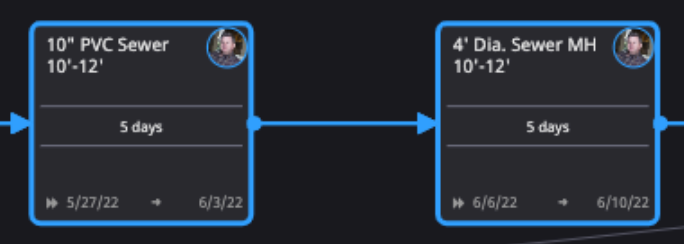 a. Start/Finish Dates: The earliest possible start and finish dates based on dependent SmartTask constraints. When this checkbox is marked (default), each SmartTask updates to reflect the earliest possible time it can begin (based on the definition of their dependency) and finish (based on their duration). The resulting dates appear in the bottom of the SmartTask tile in blue.