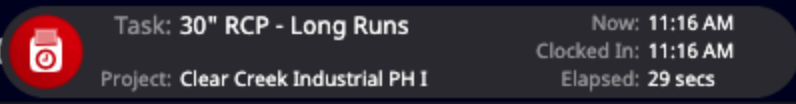 - Once clocked in, users can switch between tasks, automatically clocking out of one and into the other. This can be done by clicking on the Time Clock icon for the task that will be clocked into--either in Power Grid mode, or by accessing the task detail screen.