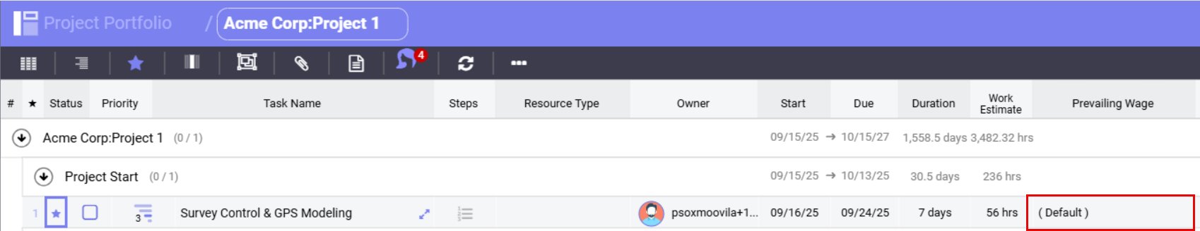 For a given task, users have the ability to set the appropriate prevailing wage at the task level (If needed)