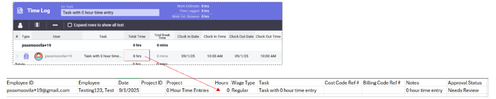 0 hour time entries will now be displayed in Detailed Payroll Report