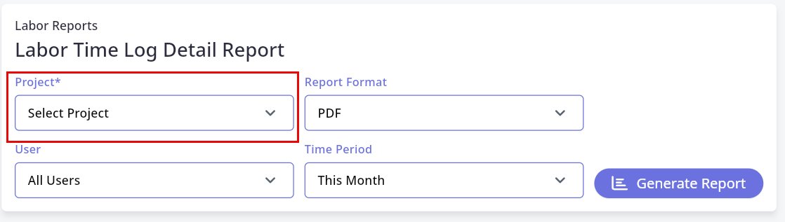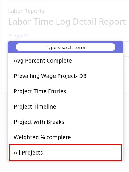 Removed “All Projects” as the default selection for Labor Time Log Detail Report